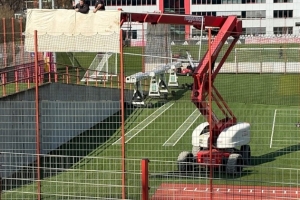 如今,需要增设训练场地的拜仁打起了这个地块的主意,即将拆除殆尽以迎接新空间。在对将来的施工现场的视察中,德雷森和弗洛因德还明确了一点:新的球场将与现有的1号和2号球场一样,安装一米高的视线防护栏,以便球队进行全封闭训练。拜仁高层让工人在升降机上拉起一块篷布,以此模拟视线防护栏的高度,以确保球星不被公众窥视。这一建筑计划恐怕不会让拜仁球迷高兴。毕竟,部分球迷会特意从德国各地赶来,只为看一眼他们的偶像。