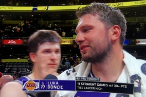24直播网3月26日讯 NBA常规赛,湖人客场137-130战胜步行者。赛后东契奇接受了采访。