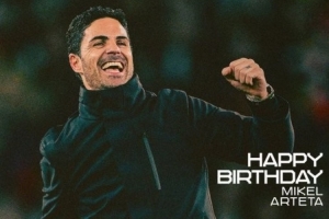 24直播网3月26日讯 阿尔特塔今天迎来44岁生日,阿森纳官推发文祝福。