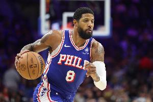 24直播网3月26日讯 NBA常规赛,76人157-137大胜公牛。本场乔治解禁复出,赛后他接受了媒体采访,同时VJ·埃奇库姆正在逗乔治的儿子。