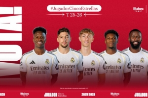 24直播网3月26日讯 皇马公布了3月份的最佳球员候选,维尼修斯、巴尔韦德、赫伊森、琼阿梅尼和吕迪格在列。