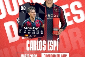 24直播网3月28日讯 西甲官方宣布,莱万特前锋卡洛斯·埃斯皮当选西甲3月最佳球员。