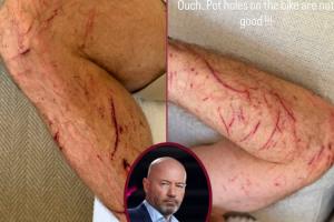 24直播网03月28日讯 55岁阿兰·希勒更新社媒晒照,自己骑自行车时受伤。