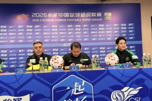 24直播网04月16日讯 中超第6轮浙江vs北京国安赛前,浙江队主帅阿洛伊西携队员钱杰给出席赛前发布会。