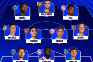 24直播网4月16日讯 欧冠1/4决赛次回合已全部赛罢,欧冠官方评出了本周最佳阵容,其中登贝莱、奥利塞、费兰·托雷斯领衔锋线。