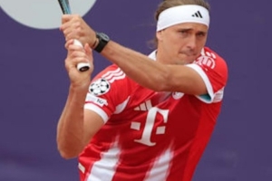 24直播网4月17日讯 世界排名第三的ATP网球选手、拜仁球迷亚历山大·兹维列夫在今日出战慕尼黑公开赛时,身穿了一件奥利塞的拜仁球衣。
