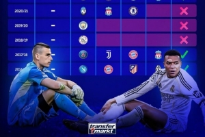 24直播网4月17日讯 本轮欧冠八强战,皇马主场1-2、客场3-4被拜仁双杀淘汰出局,《转会市场》也列出了皇马近10年的欧冠战绩及被淘汰出局时的对手: