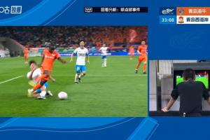 24直播网04月17日讯 中超第6轮,青岛海牛vs青岛西海岸。比赛第31分钟,叶博亚高速前插进入西海岸禁区,王庚睿倒地放铲,主裁判第一时间判罚门球。