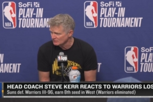 24直播网4月18日讯 NBA附加赛,勇士96-111不敌太阳,无缘季后赛。赛后史蒂夫·科尔接受了媒体采访,以下为采访全文。