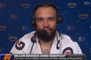 24直播网4月18日讯 NBA附加赛,太阳111-96击败勇士,赛后狄龙连线演播室接受了媒体采访,以下为采访全文。