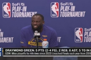 24直播网4月18日讯 NBA附加赛,勇士96-111不敌太阳。赛季结束。赛后德雷蒙德·格林接受了媒体采访,以下为采访全文。
