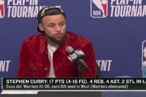 24直播网4月18日讯 NBA附加赛,勇士96-111不敌太阳。赛季结束。赛后库里接受了媒体采访,以下为采访全文。