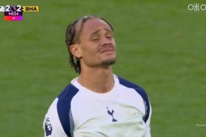 24直播网04月19日讯 热刺vs布莱顿,鲁特尔破门,布莱顿第94分钟绝平热刺!镜头随即给到西蒙斯,这场世界波+助攻的他非常痛苦!