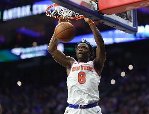 24直播网4月19日讯 NBA季后赛首轮G1,尼克斯半场57-55领先老鹰。