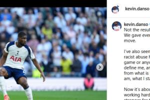 24直播网04月19日讯 热刺主场2-2战平布莱顿后,凯文·丹索在社交媒体上遭受了严重的种族歧视,丹索在社交媒体上回应赛况以及遭到的种族歧视。