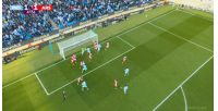 24直播网04月20日讯 曼城vs阿森纳第48分钟,曼城角球开出,拉亚挡了一下,胡桑诺夫打门被封堵,随后哈兰德中柱!