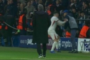 24直播网3月16日讯 在欧冠1/8决赛首回合切尔西对阵巴黎的补时阶段,内托冲向场边试图从一名球童手中抢回球,推搡了对方。