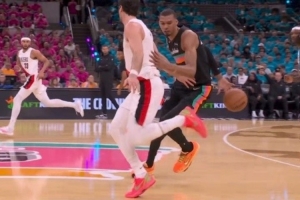 24直播网4月20日讯 今日西部季后赛首轮马刺对阵开拓者G1,比赛中文班亚马狂秀操作,解说员王子星在直播中谈到了此事。