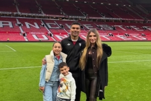 24直播网3月17日讯 曼联中场卡塞米罗更新社媒,晒出全家在老特拉福德的合影。