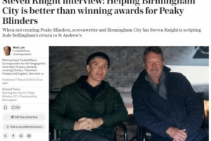 24直播网3月17日讯 《浴血黑帮》主创、伯明翰资深球迷史蒂文·奈特接受采访,谈到伯明翰新球场设计、对贝林厄姆回归的憧憬、家庭与俱乐部的深厚渊源,以及《浴血黑帮》IP如何影响俱乐部现实。