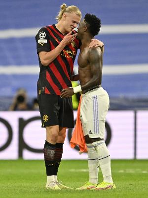 24直播网3月17日讯 欧冠1/8决赛次回合,皇马将前往客场挑战曼城。首回合的比赛,皇马在伯纳乌取得3-0的完胜,这让西甲豪门一只脚踏入了1/4决赛。本场比赛之前,《马卡报》对两队首发阵容进行了预测,维尼修斯对决哈兰德,姆巴佩替补,小将皮塔奇出战。