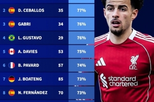 24直播网3月18日讯 德国转会市场盘点了1992-93赛季欧冠改制以来,至少出战25场比赛的球员胜率情况,利物浦的柯蒂斯·琼斯以80%的胜率居首。