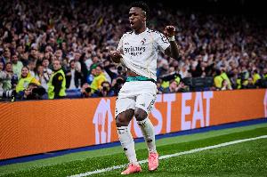 24直播网3月18日讯 欧冠1/8决赛次回合,皇马在客场挑战曼城。本场比赛,维尼修斯为客队打进了首开纪录的进球。