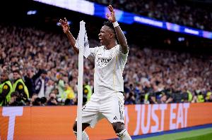 24直播网3月18日讯 在本轮欧冠淘汰赛皇马对阵曼城的比赛中,维尼修斯破门。