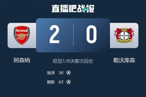 24直播网3月18日讯 欧冠1/8决赛次回合,阿森纳主场2-0击败勒沃库森,两回合总比分3-1淘汰对手,晋级八强。
