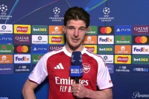 24直播网3月18日讯 北京时间今晨,欧冠1/8决赛次回合,阿森纳2-0击败勒沃库森、以总比分3-1晋级,赖斯在赛后接受了亨利的采访。
