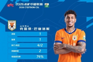24直播网3月18日讯 联赛第2轮结束后,中超官方公布了本轮的最佳球员,山东泰山的克雷桑当选。这名外援前锋本轮贡献1个进球和1个助攻,最终山东泰山2-1战胜北京国安。