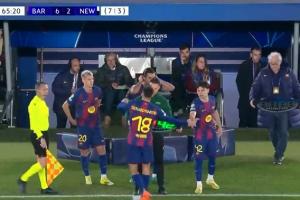 24直播网03月19日讯 欧冠1/8决赛次回合,巴萨对阵纽卡。66分钟,巴萨连换三人,坎塞洛、莱万、费尔明被换下,奥尔莫、费兰、18岁埃斯帕特出场。