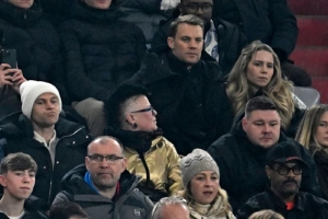 24直播网3月19日讯 《图片报》报道,在今天凌晨拜仁慕尼黑4-1击败亚特兰大的比赛中,基米希和他的家人们一起来到现场观战,诺伊尔也带着妻子观赛。