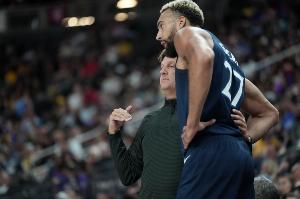 24直播网3月19日讯 森林狼147-111大胜爵士。赛后,森林狼主帅芬奇接受媒体采访时,谈到了本队中锋戈贝尔。