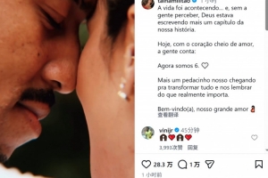 24直播网3月21日讯 米利唐与妻子泰纳·卡斯特罗联合更新社媒动态,宣布泰纳·卡斯特罗怀孕。