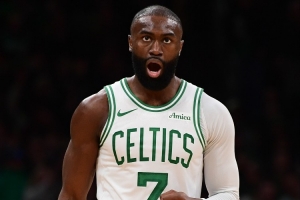 24直播网3月21日讯 NBA常规赛,凯尔特人117-112险胜灰熊。杰伦·布朗此役发挥出色,上场38分钟,投篮23中10,三分球5中2,罚球8中8,砍下30分6篮板6助攻的全面数据,正负值+9。