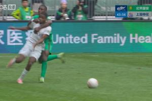 24直播网03月21日讯 中超第3轮,北京国安vs上海申花。比赛第43分钟,法比奥前场丢球后反抢,战术犯规一把拽住马纳法,被马宁出示黄牌警告。