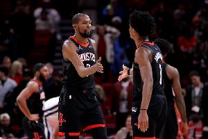 24直播网3月22日讯 火箭123-122险胜热火。赛后,火箭球星杜兰特接受媒体采访时,谈到了队友阿门。