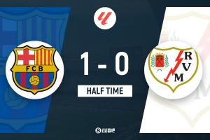 上半场补时3分钟,巴萨1-0巴列卡诺。