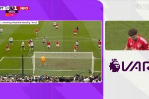 24直播网03月22日讯 英超第31轮,热刺vs诺丁汉森林。上半场结束前,罗梅罗在对手禁区倒地,VAR介入,最后确认没有点球。