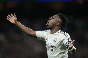 24直播网3月23日讯 西甲第29轮比赛,维尼修斯打进2球,皇马主场3-2领先马竞。