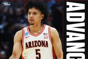 24直播网3月23日讯 今日NCAA疯三32强赛,赛区1号种子亚利桑那大学78-66击败赛区9号种子犹他州立大学,晋级16强。