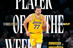 24直播网3月24日讯 今日NBA官方宣布,湖人球星东契奇当选上周西部周最佳球员!
