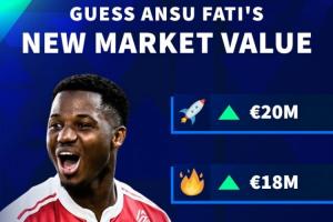 24直播网03月24日讯 德转发布身价预告,23岁法蒂身价确定上涨。